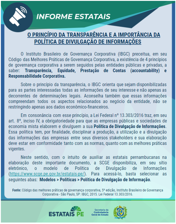 - Informe Estatais nº 001_2023 – O Princípio da Transparência e a Importância da Política de Divulgação de Informações