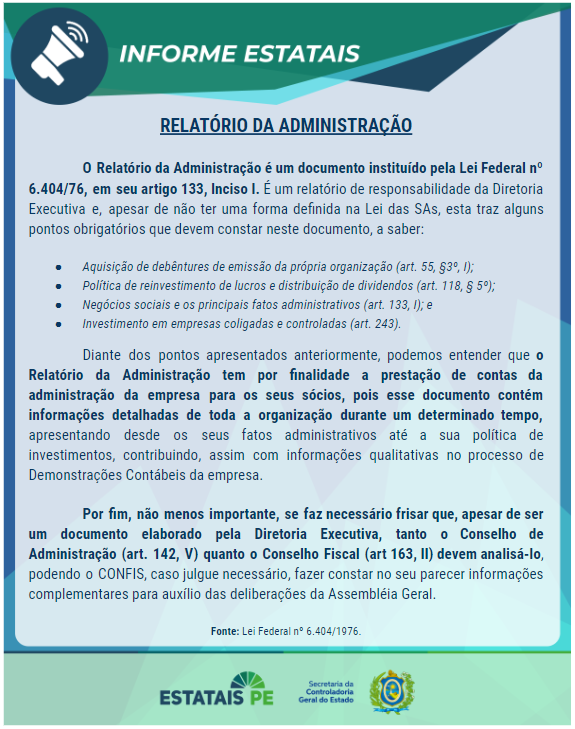 - Informe Estatais nº 003 2023 – Relatório da Administração
