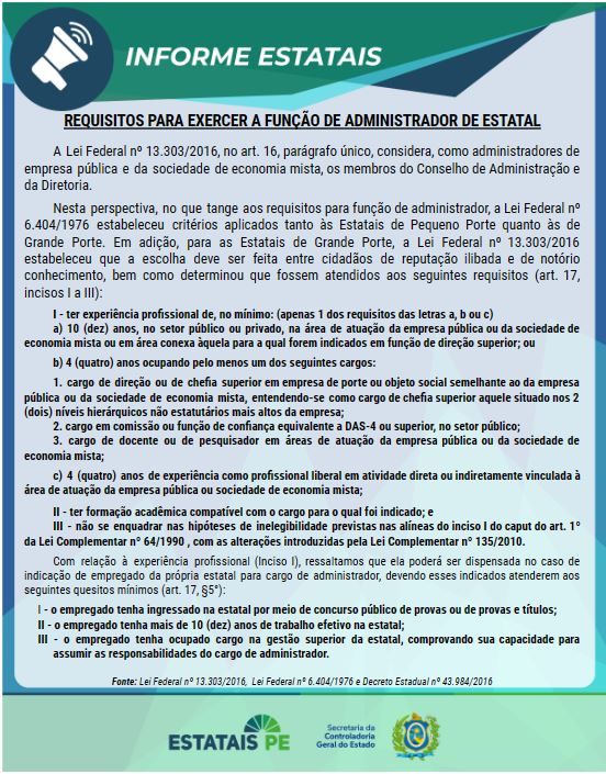 - Informe Estatais nº 004 2023 – Requisitos para Exercer a Função de Administrador de Estatal