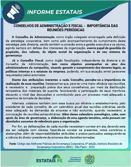 - Informe Estatais nº 005 2023 – Conselhos de Administração e Fiscal – Importância das Reuniões Periódicas